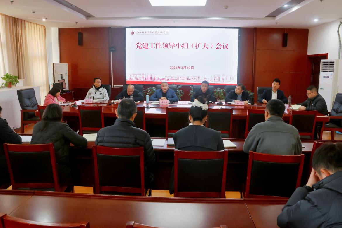 3月10日下午,科技学院在知行楼第二会议室召开党建工作领导小组(扩大)会议,深入学习贯彻习近平总书记关于树立和践行正确政绩观学习教育的重要讲话和重要指示精神,贯彻落实中央、省委、省委教育工委和江西师范大学党委有关部署要求,对全院开展树立和践行正确政绩观学习教育进行动员部署。科技学院党政领导班子成员、学院党建工作领导小组成员单位主要负责人和各党总支书记、机关党支部书记参加会议。